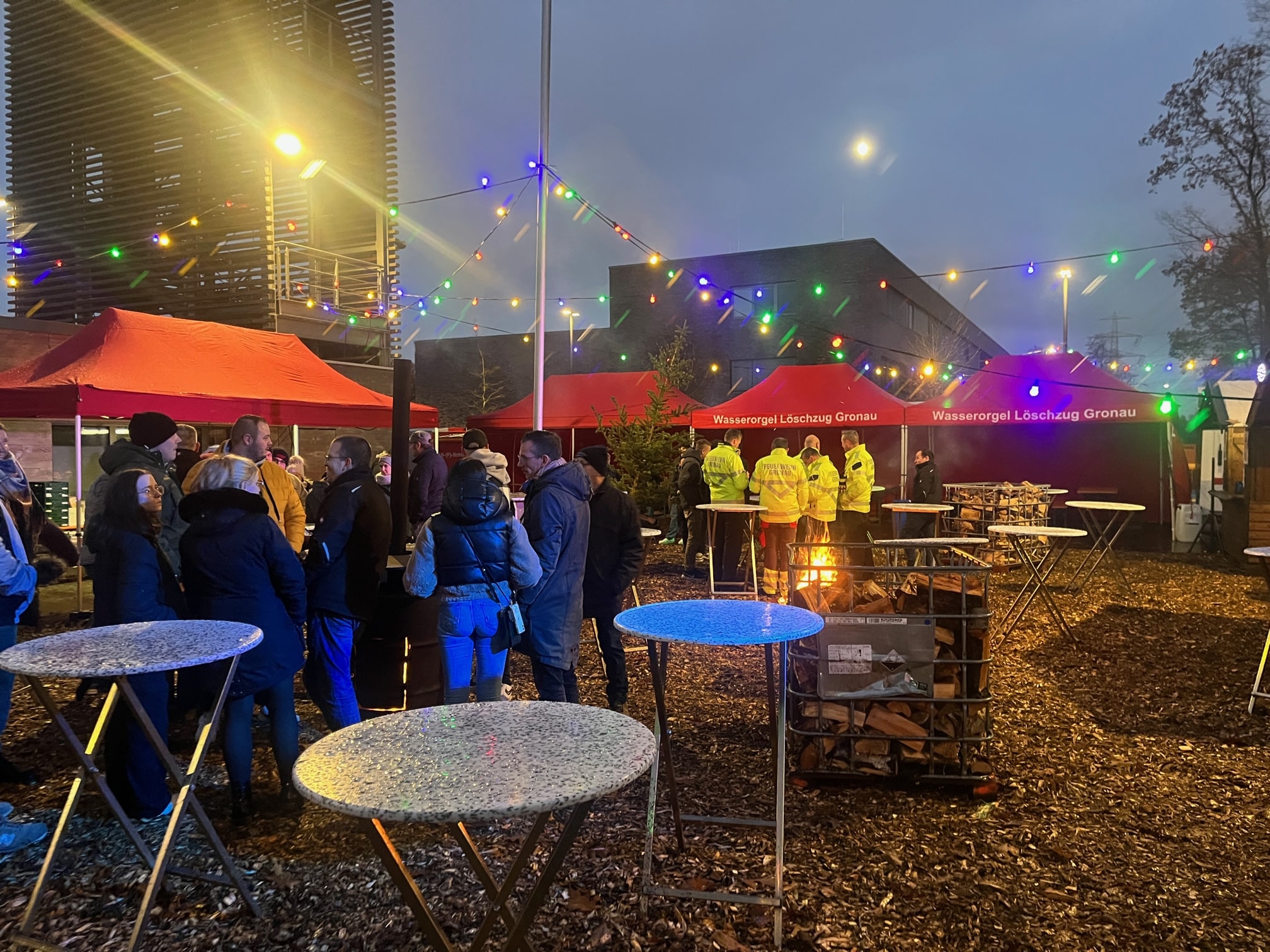 Als Dankeschön für die Unterstützung an diesem Tage und den vielen Stunden in der Vorbereitung fand am Freitag Abend ein Weihnachtsmarkt statt. Über 200 Personen aus dem Personal der Feuer- und Rettungswache, den Mitgliedern der Löschzüge Gronau und Epe, der Jugendfeuerwehr und der Ehrenabteilungen sowie allen Partnerinnen und Partner bzw. Eltern nahmen an diesem Termin teil.