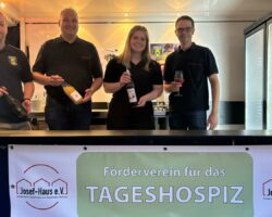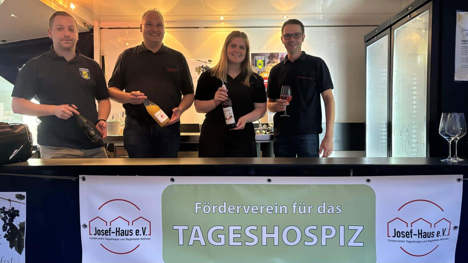 Samstagabend unterstützten vier Kameradinnen und Kameraden den Förderverein Josef Haus e.V. auf dem Weinfest in Epe. Der Erlös aus dem Verkauf von Wein kommt dem gemeinnützigen Verein zugute. Der Förderverein Josef Haus e.V. unterstützt mit der Einrichtung Josef Haus das selbstbestimmte Wohnen und das Tageshospiz in Epe. Leider wurde die gute Stimmung des Abends im Eper Ortskern durch einen Regenschauer ein wenig getrübt. Dennoch waren die vielen Gäste bestens zufrieden und bescherten dem Förderverein Josef e.V. einen guten Erlös.