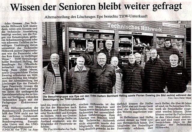 Wissen der Senioren bleibt weiter gefragt Von: Webteam Feuerwehr Gronau 9. Februar 2007 Pressebericht zum Besuch der Eper Ehrenabteilung beim THW Gronau