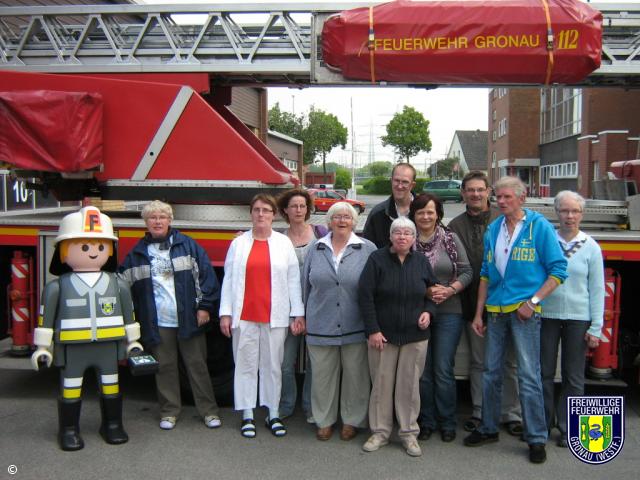 Heute besuchte eine Wohngruppe des Wittekindshofs die Feuerwehr Gronau. Sie informierten sich über die Aufgaben der Feuerwehr und ihre Möglichkeiten. Weiterhin wurden verschiedene Gefahren besprochen und wie man sie vermeidet. In dem Brandschutzhaus konnten die Behinderten hautnah erleben was zu tun ist, wenn ein Feuer ausbricht. Auch das richtige Absetzen des Notrufes haben die Besucher am Übungstelefon in Zusammenarbeit mit den Betreuern durchspielen können. Ein gelungener Nachmittag für die Wohngruppe und die Feuerwehr.
