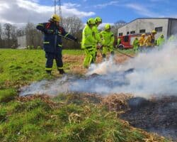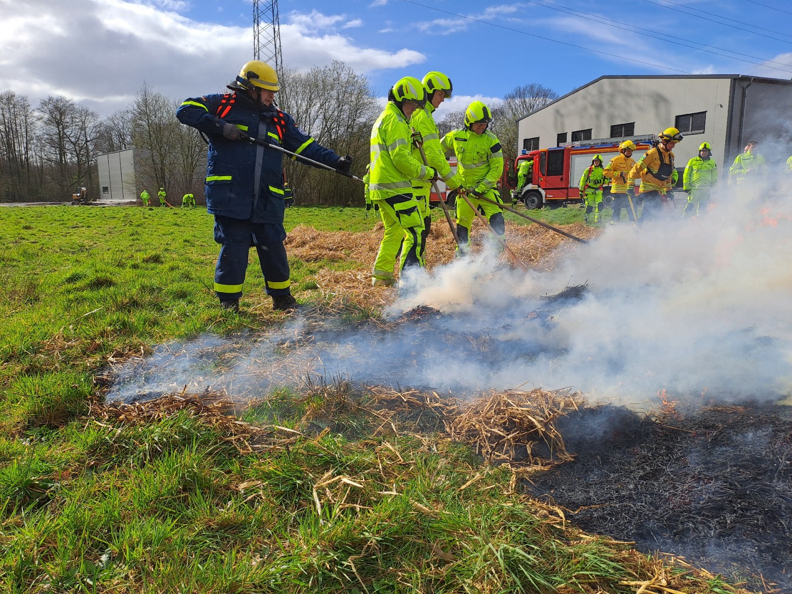Für die Kameradinnen und Kameraden der Feuerwehr ist die Ausrüstung ebenfalls neu und so erfolgte direkt von den Spezialisten eine Einweisung in Sicherheitsregeln, Brandarten und taktischen Vorgehensweisen. Nachmittags setzen dann alle Teilnehmer in kleinen Gruppen die in der Theorie vermittelten Kenntnisse in die Praxis um. Die neue Ausrüstung wurde umfangreich erklärt und ausprobiert. Spezielle Funktionen der Fahrzeuge wie Pump & Roll wurden praktisch erprobt und kleine Tricks zu Schlauchmanagement und dem Umgang mit Feuerpatschen und Löschrucksäcken ausgetauscht.